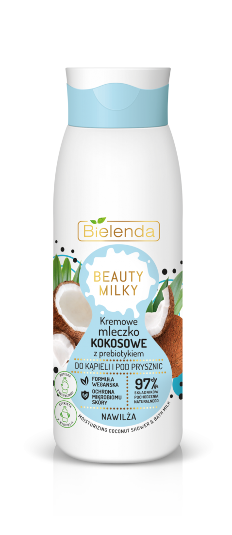 Позначок: BEAUTY MILKY, гель для душу, Гель-молочко для душу Кокосове молочко + Пребіотик, зволоження тіла, молочко для душу, щоденний догляд за тілом