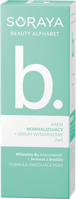 Позначок: BEAUTY ALPHABET, Soraya, VIT В, вітамін В, жирна шкіра, крем, крем для обличчя, крем-сироватка, нормалізація, проти чорних цяток, розгладження, себорегуляція, щоденний догляд