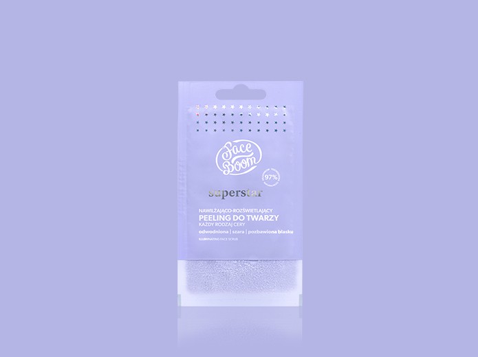 Спосіб застосування: Змочіть шкіру обличчя, розподіліть і масажуйте круговими рухами близько хвилини, уникаючи області навколо очей. Потім ретельно змити. Для найкращого результату використовуйте 1-2 рази на тиждень разом з іншими косметичними засобами серії FaceBoom Superstar!