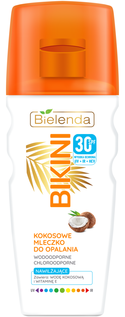 Позначок: Bikini, SPF30, догляд за тілом у сезон літа, захіст від сонця, молочко від сонця, Молочко сонцезахисне з Кокосовою оліею