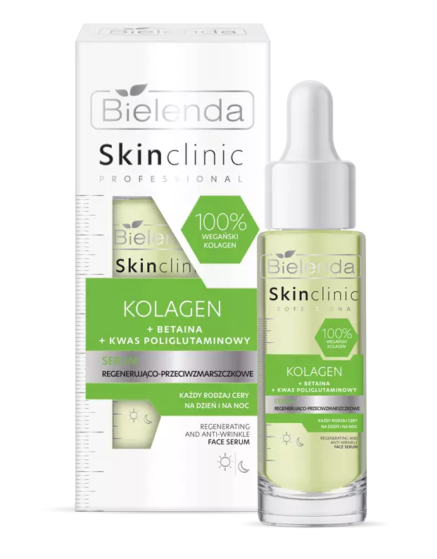 Позначок: 35+, skin clinic new, SKIN CLINIC PROFESSIONAL, антивіковий догляд, антивікові властивості, бетаїн, відновлення пружності, глибоке зволоження, заспокоєння, знімає почервоніння, колаген, колаген веганський, регенерація, сироватка